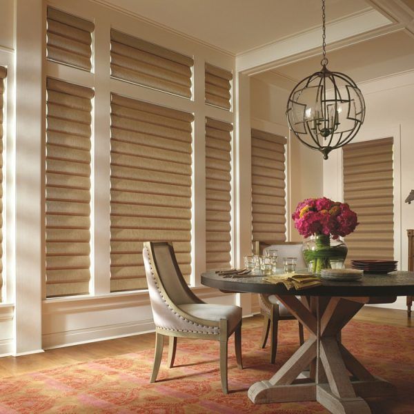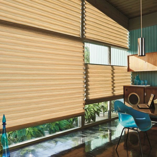 Hunter Douglas Duette shades are cordless and are available in horizontal or vertical orientations. Honeycomb shades, also known as cellular shades, can soften outside light and provide insulation and modern style.